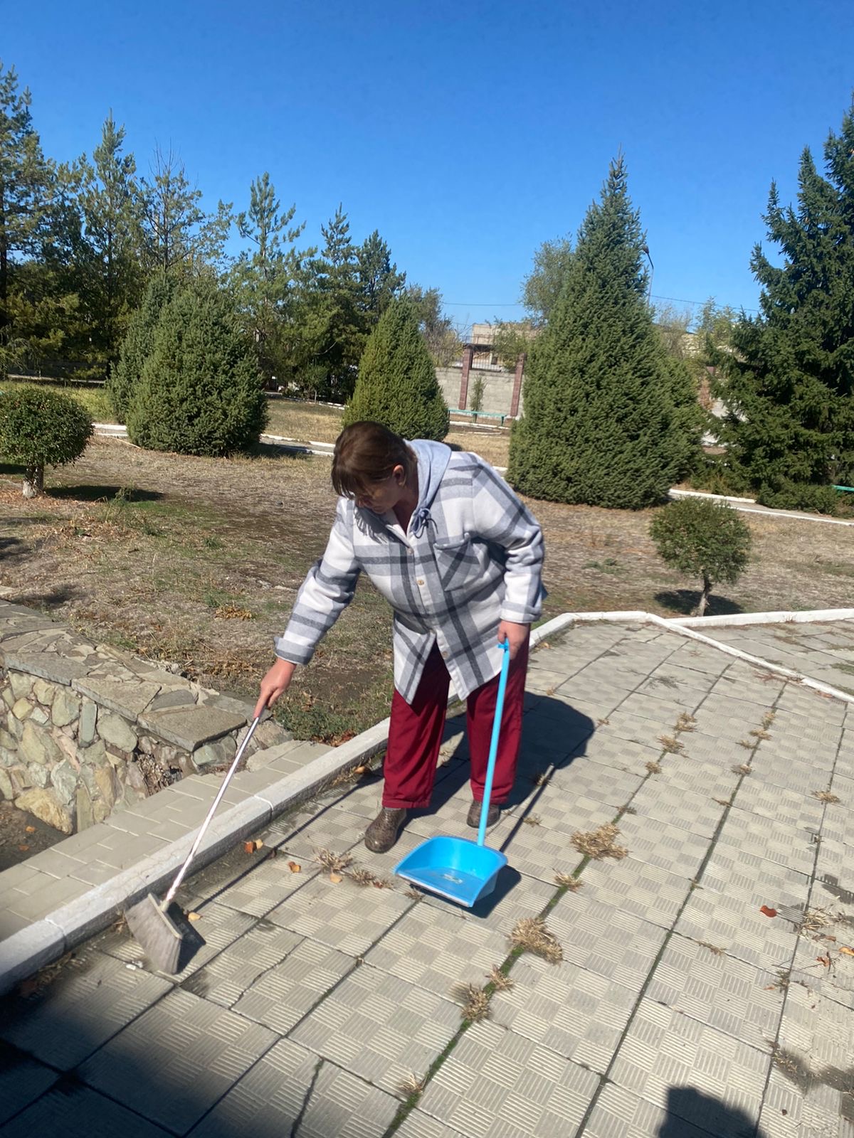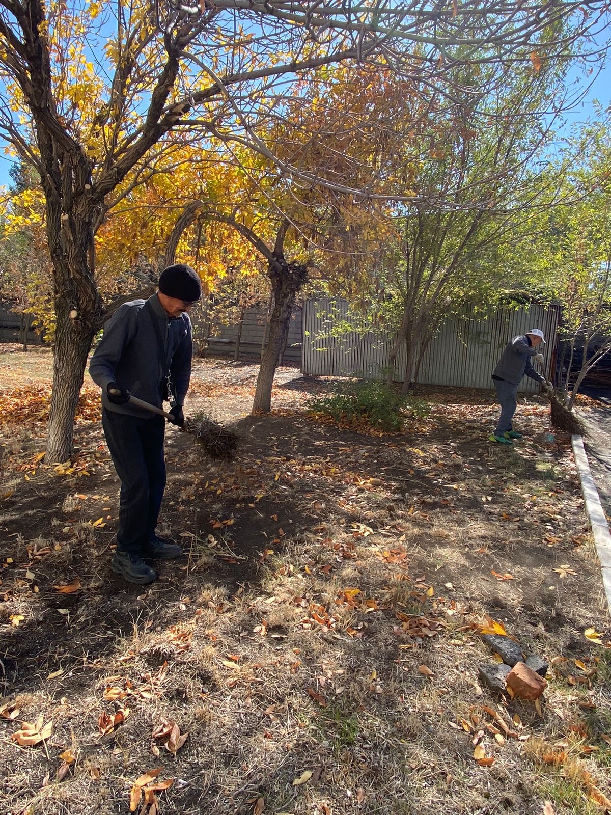 Сотрудники вместе вышли на уборку двора и территории: подмели дорожки, убрали листья, навели порядок на клумбах и полили растения. Благодаря общим усилиям территория центра стала чище и уютнее.
