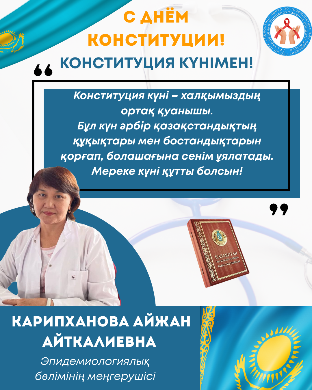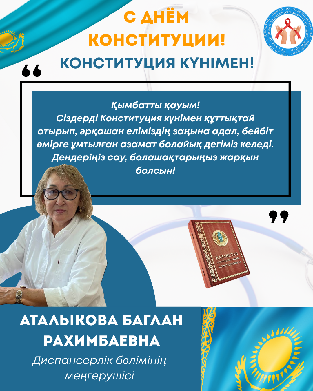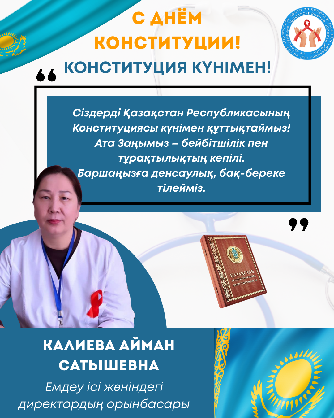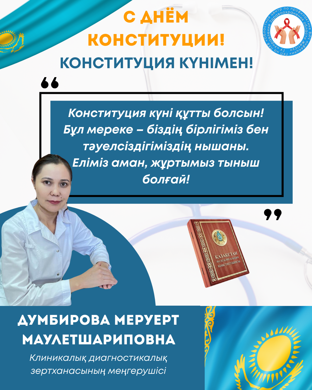 Біздің орталықтың медицина қызметкерлері сіздерді Қазақстан Республикасының Конституциясы күнімен шын жүректен құттықтайды!