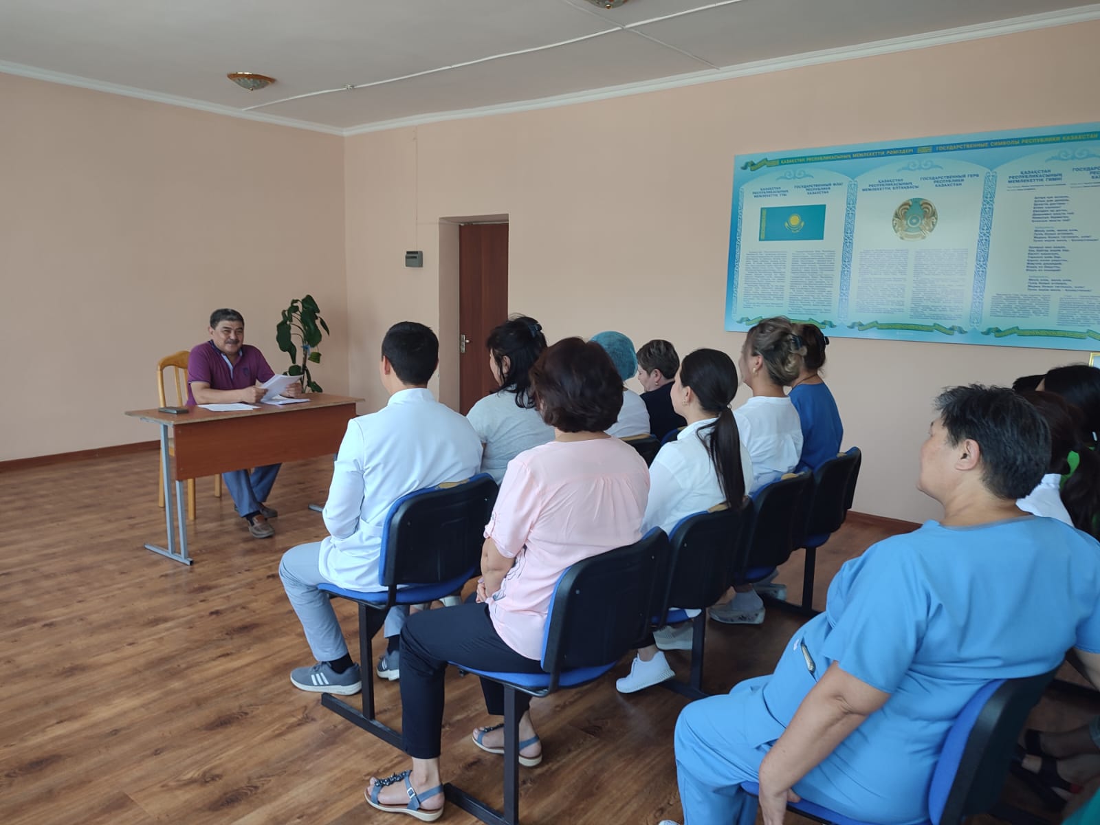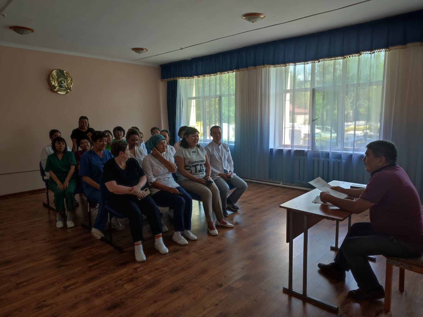 Инженер по ТБ и ОТ Балшенов К.Ж. проинформировал сотрудников об утверждении инструкции по организации антитеррористической защиты объектов, уязвимых в террористическом отношении, осуществляющих деятельность в области здравоохранения Республики Казахстан. Ознакомил со схемой оповещения на случай террористической угрозы, захвата заложников, и при иных чрезвычайных ситуациях в здании медцентра.