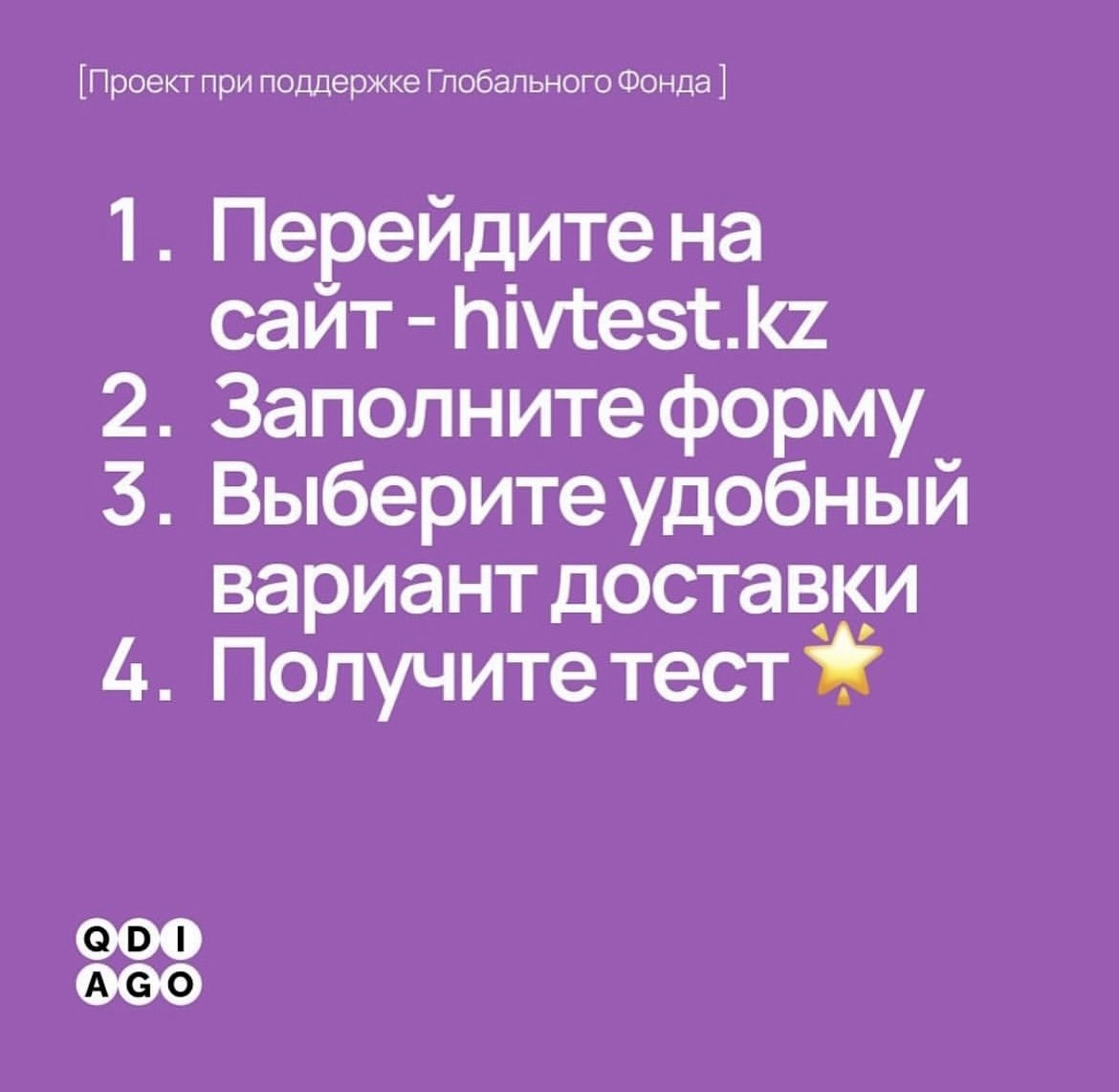Перейдите на сайт - hivtest.kz и получи тест удобным для тебя способом доставки🚚