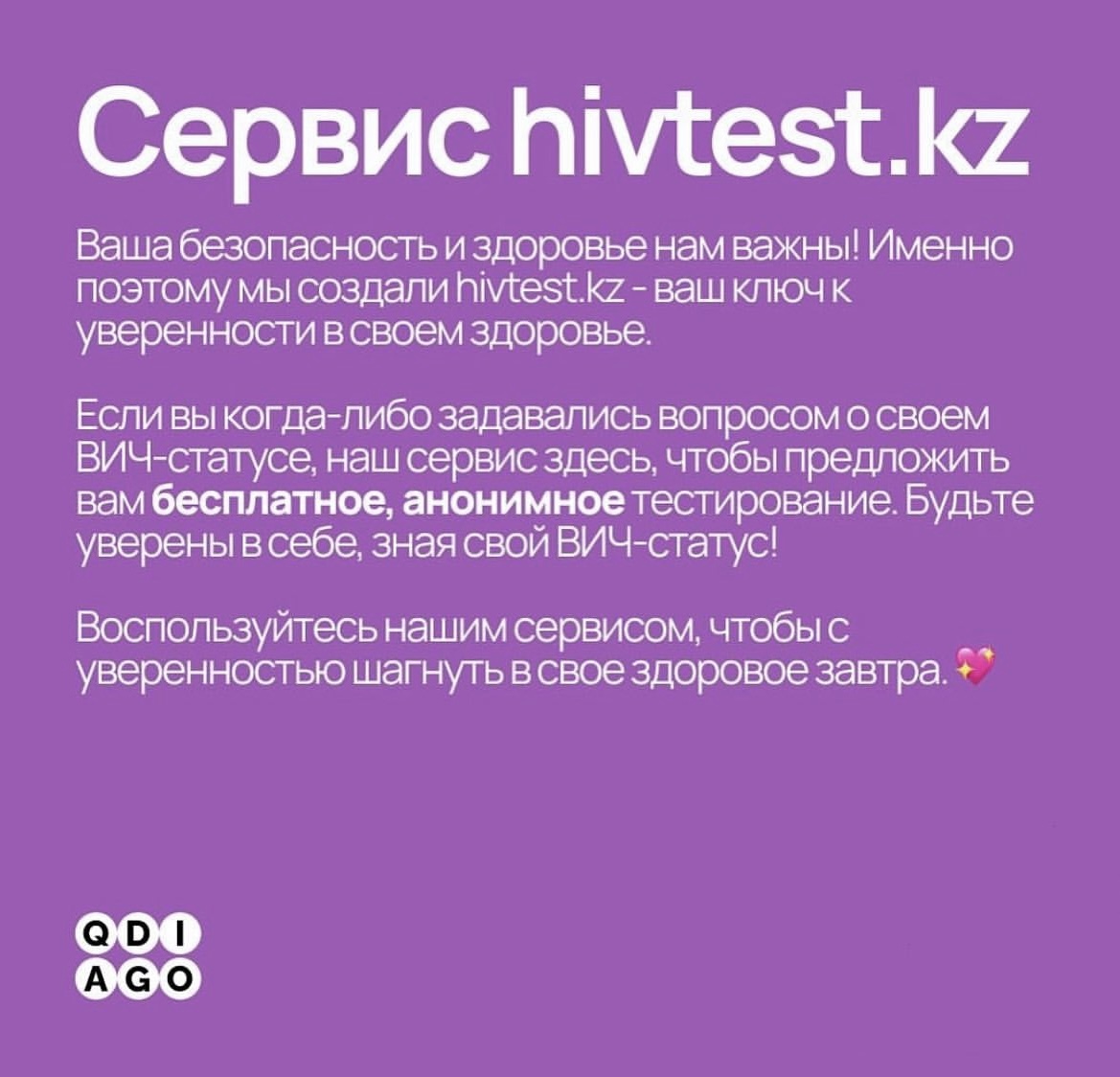 Перейдите на сайт - hivtest.kz и получи тест удобным для тебя способом доставки🚚