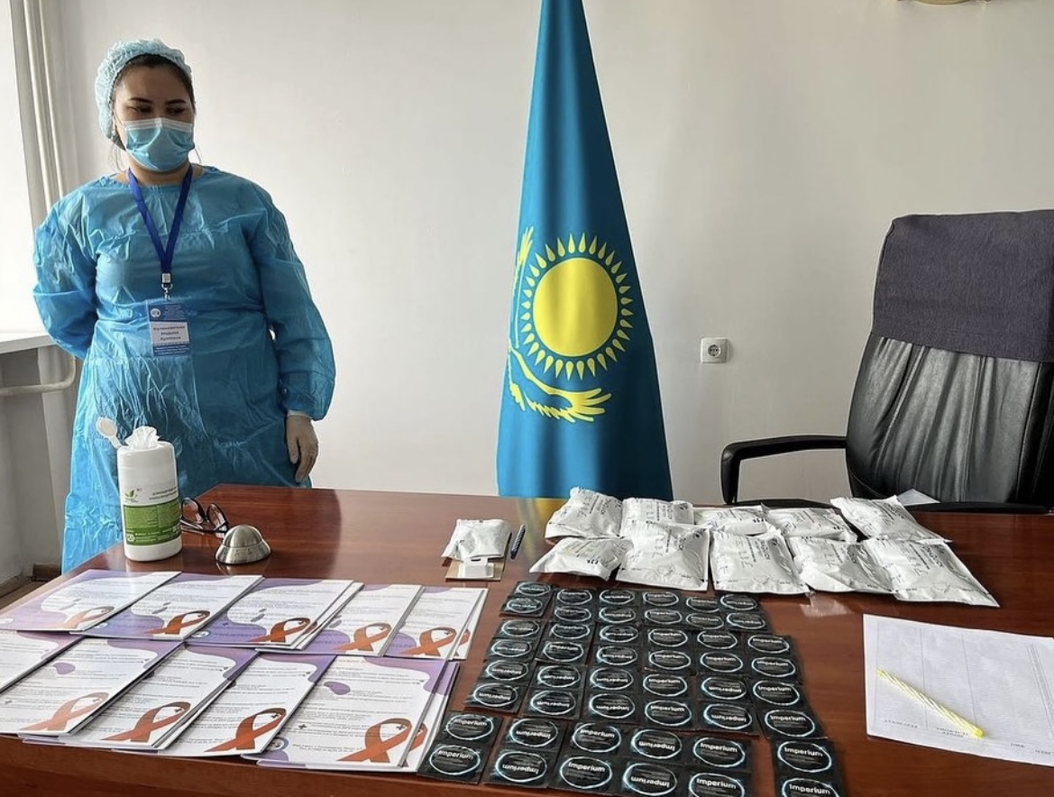 Сотрудникам Департамента были розданы агитационные материалы, средства защиты, проведен экспресс тест на ВИЧ инфекцию.
