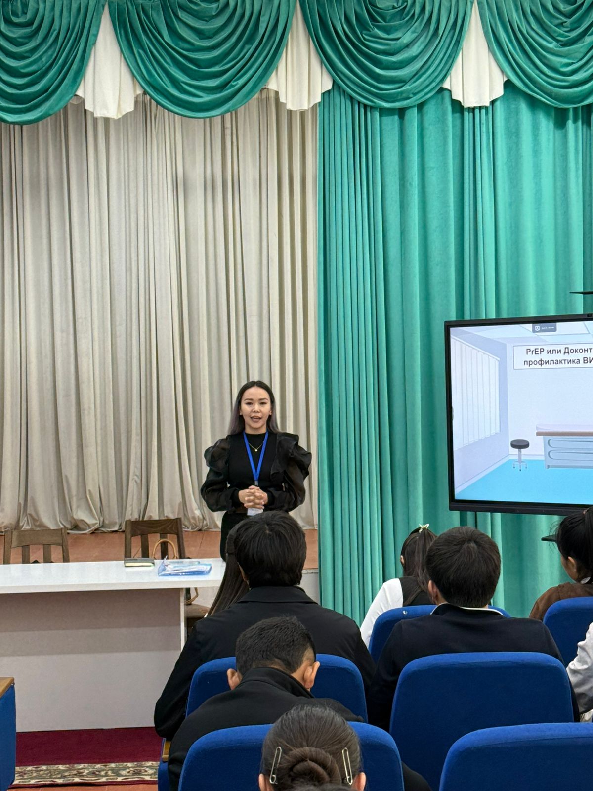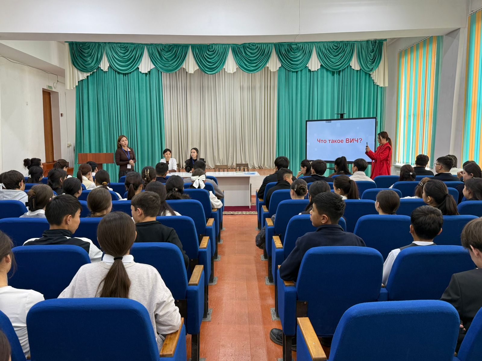 Семинар барысында АИТВ инфекциясы туралы презентация көрсетіліп, қатысушыларға сауалнама жүргізіліп, ақпараттық брошюралар таратылды.