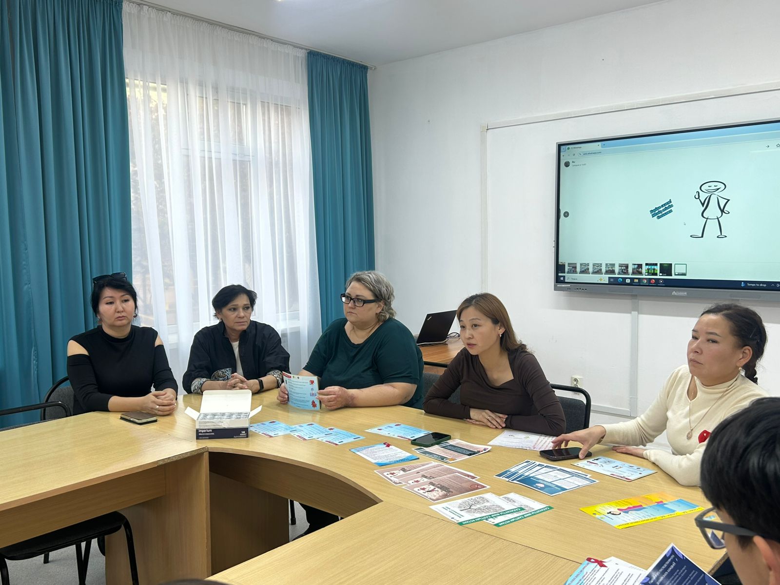 Тренинг барысында АИТВ инфекциясы туралы презентация көрсетіліп, қатысушыларға сауалнама жүргізіліп, ақпараттық брошюралар таратылды.