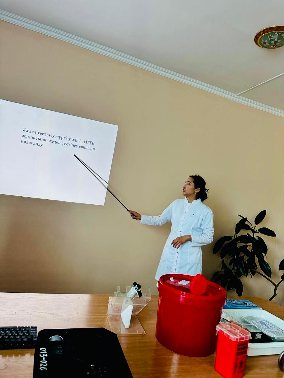 Оқытуды клинико-диагностикалық зертхананың меңгерушісі М.М. Думбирова және зертхана қызметкері А.Е. Арыстан жүргізді. Семинар барысында қатысушылар АИТВ инфекциясын жедел диагностикалау бойынша теориялық материалдармен танысып қана қоймай, жедел тест жүргізу және нәтижелерін бағалау бойынша практикалық дағдыларды да меңгерді.