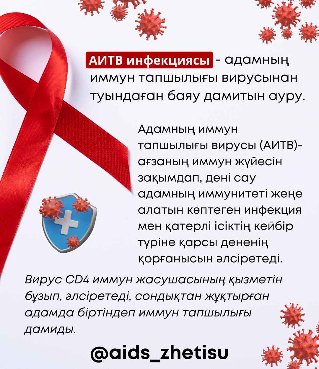 Адамның иммун тапшылығы вирусы (АИТВ) - ағзаның иммун жүйесін зақымдап, дені сау адамның иммунитеті жеңе алатын көптеген инфекция мен қатерлі ісіктің кейбір түріне қарсы дененің қорғанысын әлсіретеді. Вирус CD4 иммун жасушасының қызметін бұзып, әлсіретеді, сондықтан жұқтырған адамда біртіндеп иммун тапшылығы дамиды.