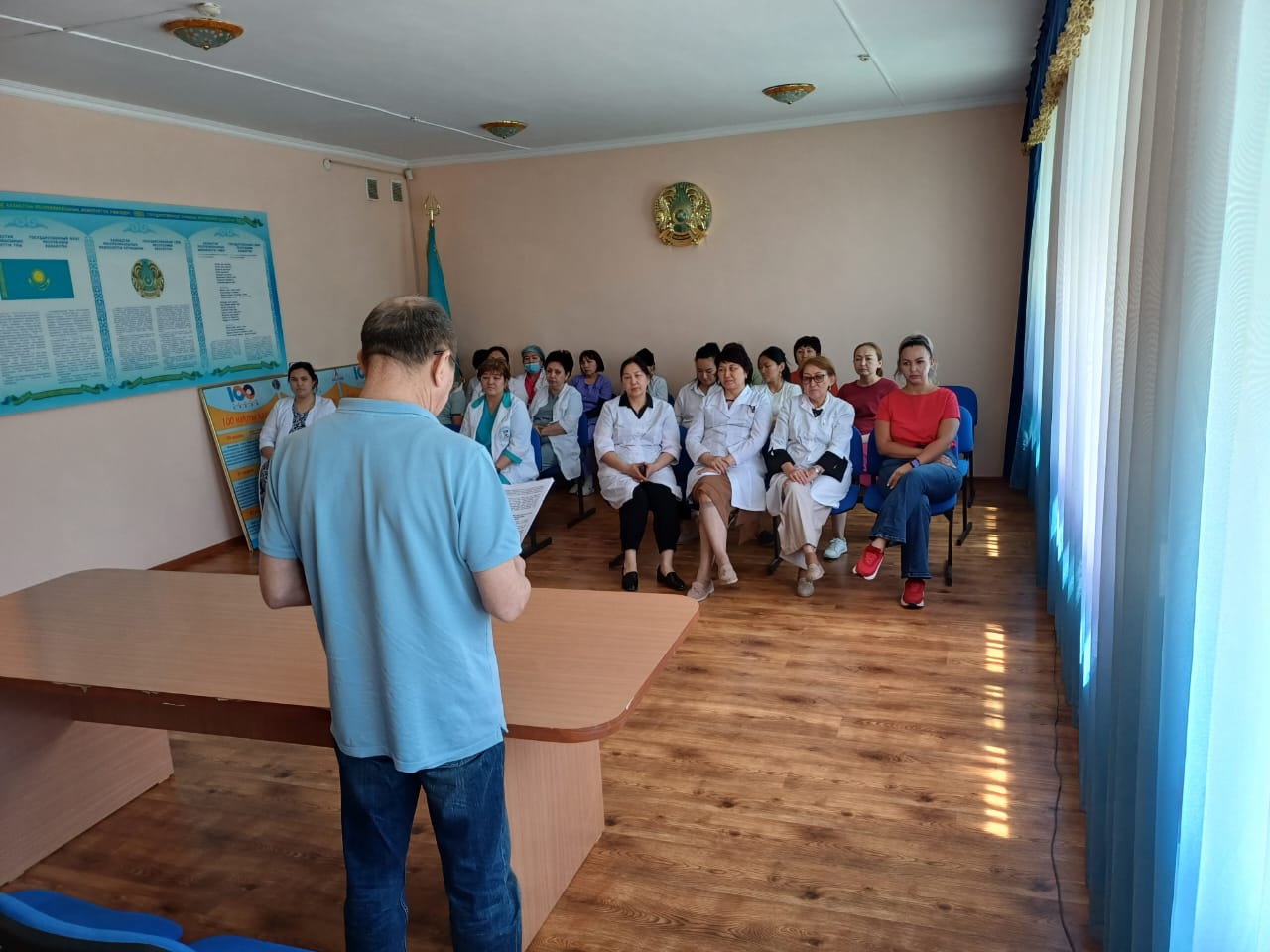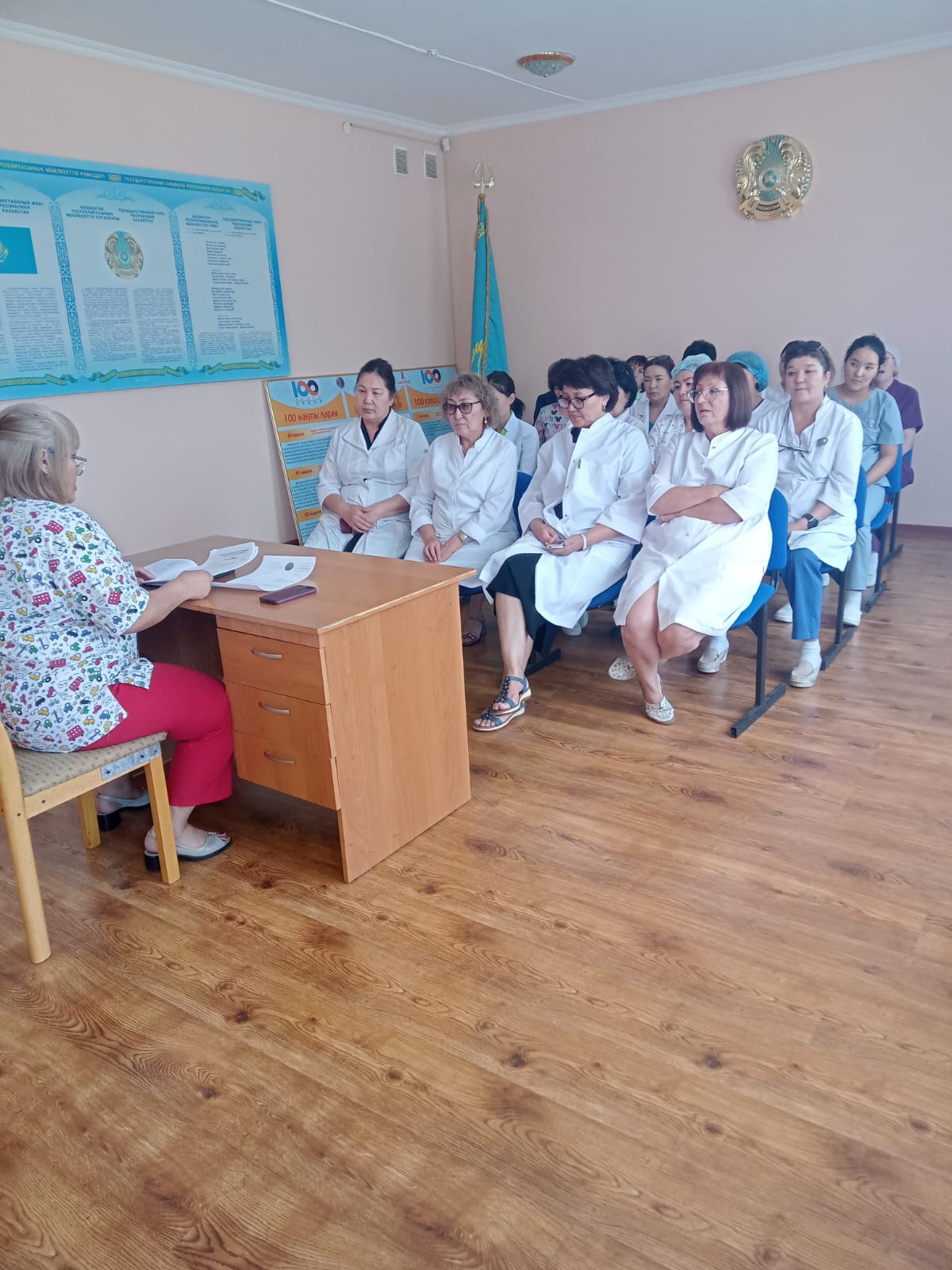 «Жетісу облысының денсаулық сақтау басқармасы» мемлекеттік мекемесінің шаруашылық жүргізу құқығындағы «Облыстық АИТВ-ның алдын алу орталығы» мемлекеттік коммуналдық кәсіпорнының қызметкерлері арасында, 2025 жылдың 24 қантар күні «Денсаулық сақтау саласындағы сыбайлас жемқорлық және оны шешу жолдары» тақырыбында әңгімелесу форматында жиналыс өткізілді.