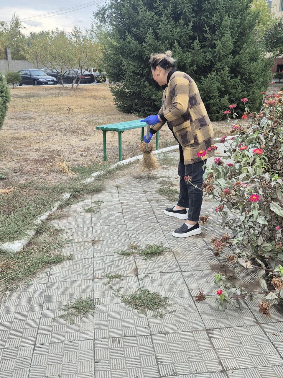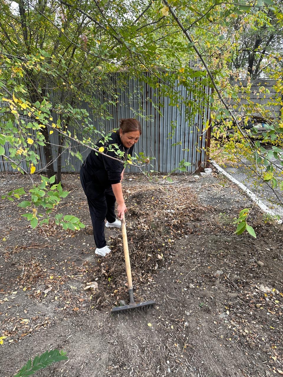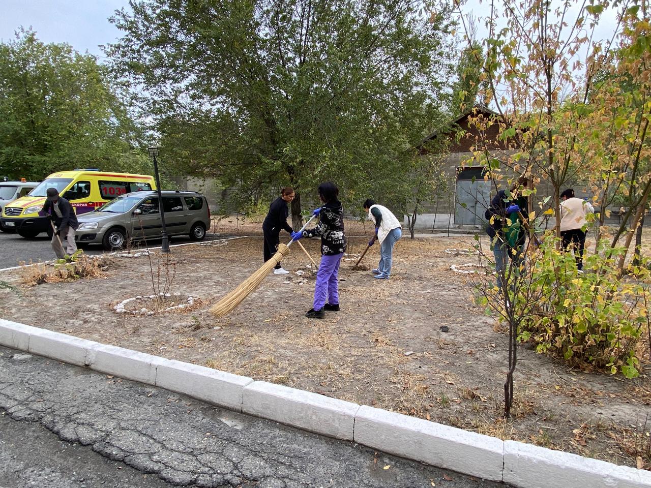 В рамках акции персонал вышел на уборку внутреннего двора и прилегающей территории. Были очищены дорожки, убраны опавшие листья и мусор, приведены в порядок клумбы, полили высаженные ранее растения.